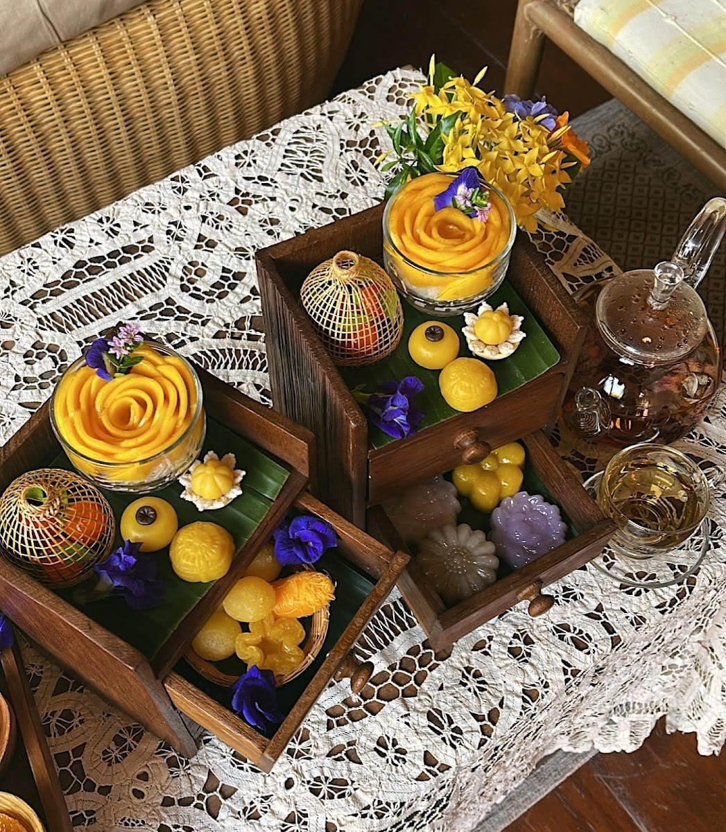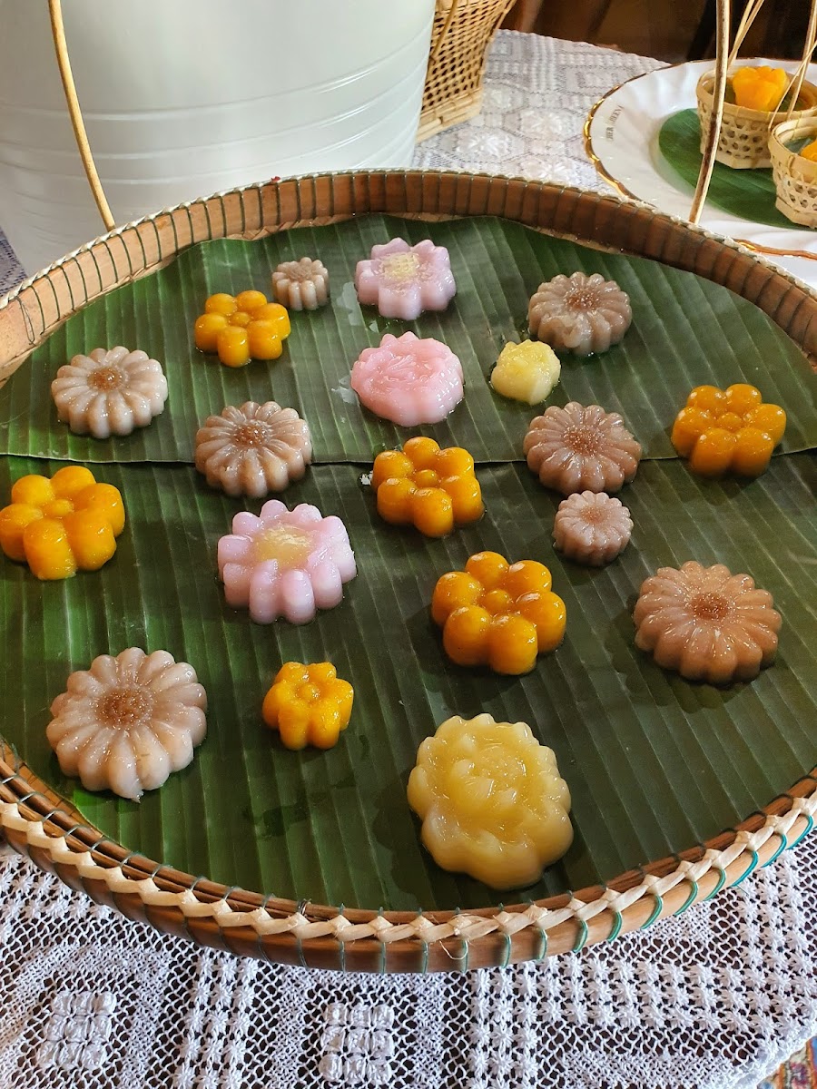 As you wander in, you're welcomed by the evocative scent of traditional Thai sweets and the gentle rustle of leaves from the lush garden. The atmosphere is undeniably calming, making it an ideal spot for relaxation and indulgence. Customers have expressed their love for this quaint cafe, with one visitor, Nida Prakenkacha, proclaiming, "I am completely in love with this dessert cafe!" The elegant wooden details and warm hues create a cozy yet sophisticated environment.